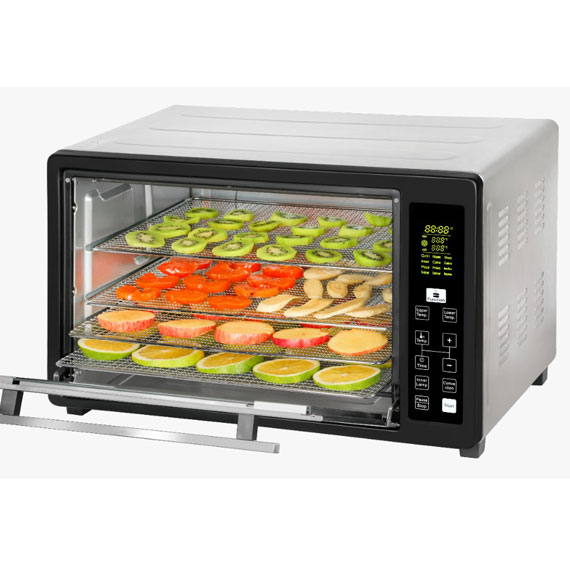 با توان 1800 وات و گنجایش 45 لیتر به شما این امکان را می دهد تا بتوانید به راحتی و با صرف زمان کمی حجم زیادی از انواع مواد غذایی شامل غذاهای گوشتی، نان و... را پخته یا روی قفسه مخصوص، گریل نمایید. این دستگاه دارای 12 برنامه پخت و مجهز به قطعه جوجه گردان بوده و درون محفظه چهار المنت حرارتی به صورت دو المنت در بالا و دو المنت در پایین قرار گرفته اند. از دیگر امکانات این دستگاه سینی توری مخصوص جهت خشک کردن میوه می باشد. از طریق درب شیشه ای دوجداره و به کمک لامپ روشنایی داخل فر و نمایشگر دیجیتال دستگاه نیز می توان بر مراحل پخت غذا نظارت کامل داشت. همچنین دستگیره درب از جنس استیل مقاوم ساخته شده و ظاهری زیبا به آن بخشیده است. آون توستر OT - A4507 CD تولیپس پلاس مجهز به فن کانوکشن و توزیع هوای گرم بوده تا پخت سریع و یکنواختی داشته باشید. درجه حرارت پخت نیز تا 230 درجه سانتی گراد قابل تنظیم و کنترل می باشد و با توجه به حجم و نوع مواد غذایی می توان دمای مورد نیاز را به آسانی تنظیم نمود. برای برخی از عملکرد ها , مانند گرم نگهدار , تخمیر , دیفراست و میوه خشک کن , فقط المنت پایینی روشن شده و کار میکند و برای سایر عملکردها می توان دمای پیش فرض المنتهای بالا و پایین را با استفاده از تنظیمات دستی , در محدوده مشخصی , به دلخواه تغییر داد . دکمه های دیگر قابل تنظیم در 4 وضعیت خاموش، جوجه گردان، فن هوای گرم و جوجه گردان همراه با فن هوای گرم می باشد. بر حسب نوع پخت و حجم مواد غذایی زمان مناسب پخت غذا تا 120 دقیقه با قابلیت قطع خودکار قابل تنظیم است.