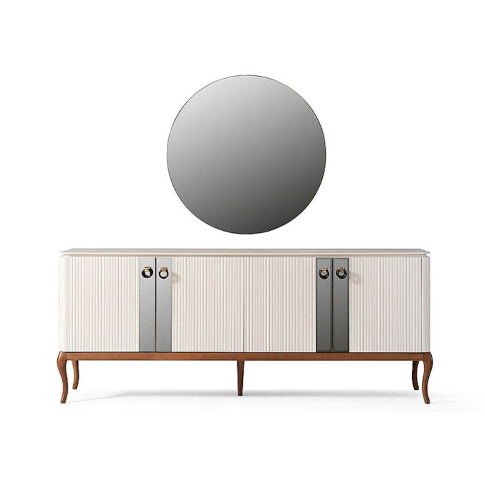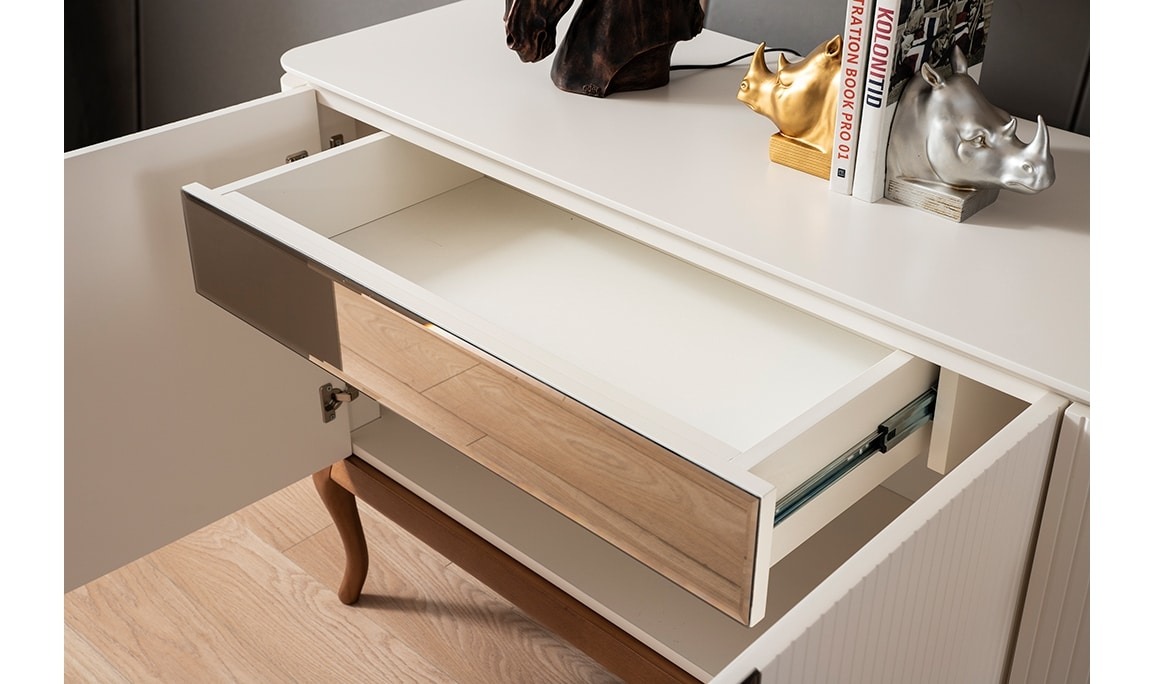 صفحه و بدنه کنسول نیو چستر از ام دی اف است و بعد از سی ان سی رنگ میشه. پایه و پاسنگ این محصول از جنس چوب راش است.