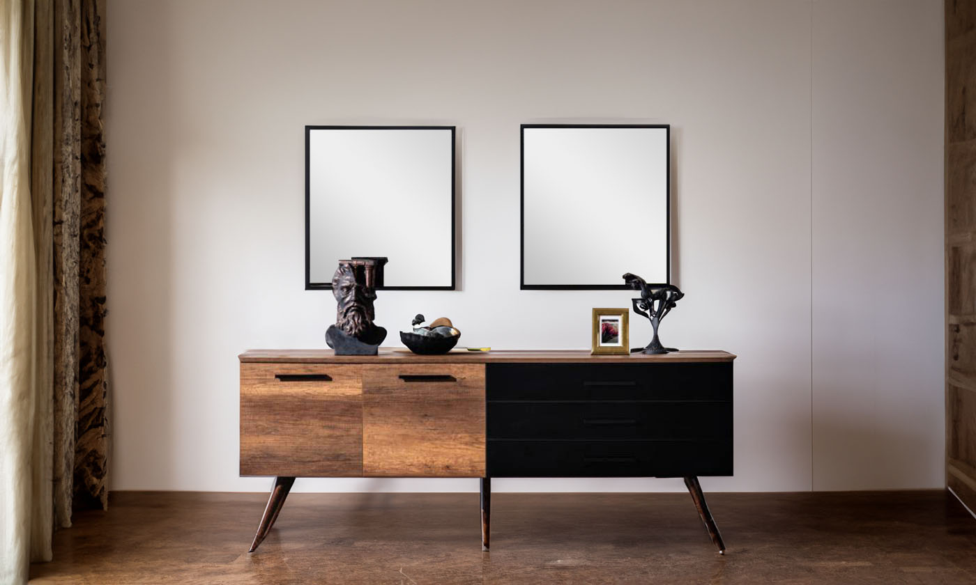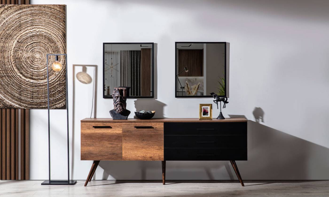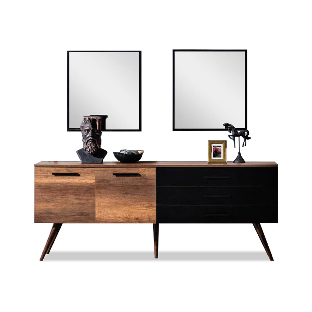 آینه کنسول هدیه یک محصول جذاب با ظاهری ساده است و در دسته کنسول های مینیمال قرار داره. استفاده از پایه مخروطی شکل چوبی و دو رنگ ام دی اف، هارمونی خوبی به نمای ظاهری میز داده.