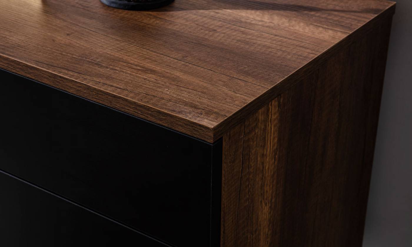 چوب به کار رفته در صفحه و بدنه این محصول هم از جنس ام دی اف است که در رنگبندی متنوع تولید میشه.