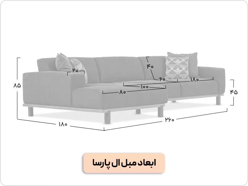 مبل ال پارسا یه محصول شیک در عین حال ساده است که در ترکیبهای ۳ و ۲ نفره با شزلون بر اساس فضایی که دارید قابل سفارش است.
