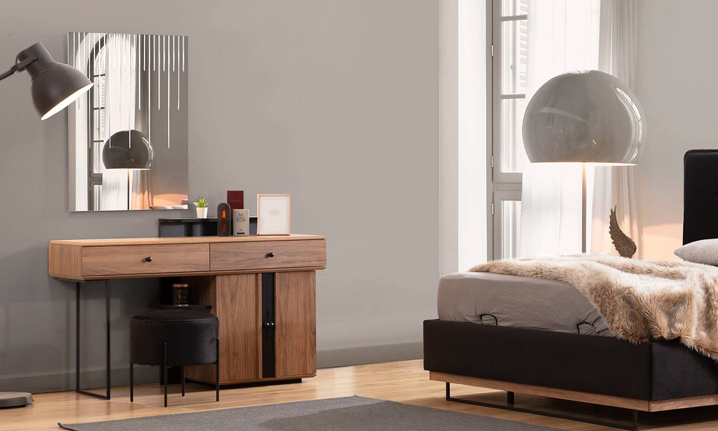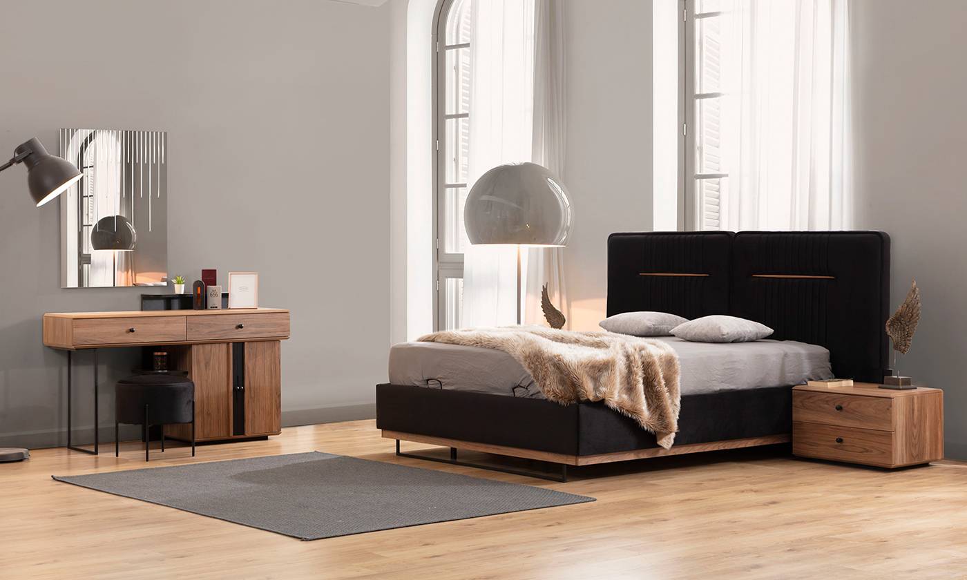 ترکیب | تختخواب دو نفره + دو عدد پا تختی + میز آرایش و آینه | |